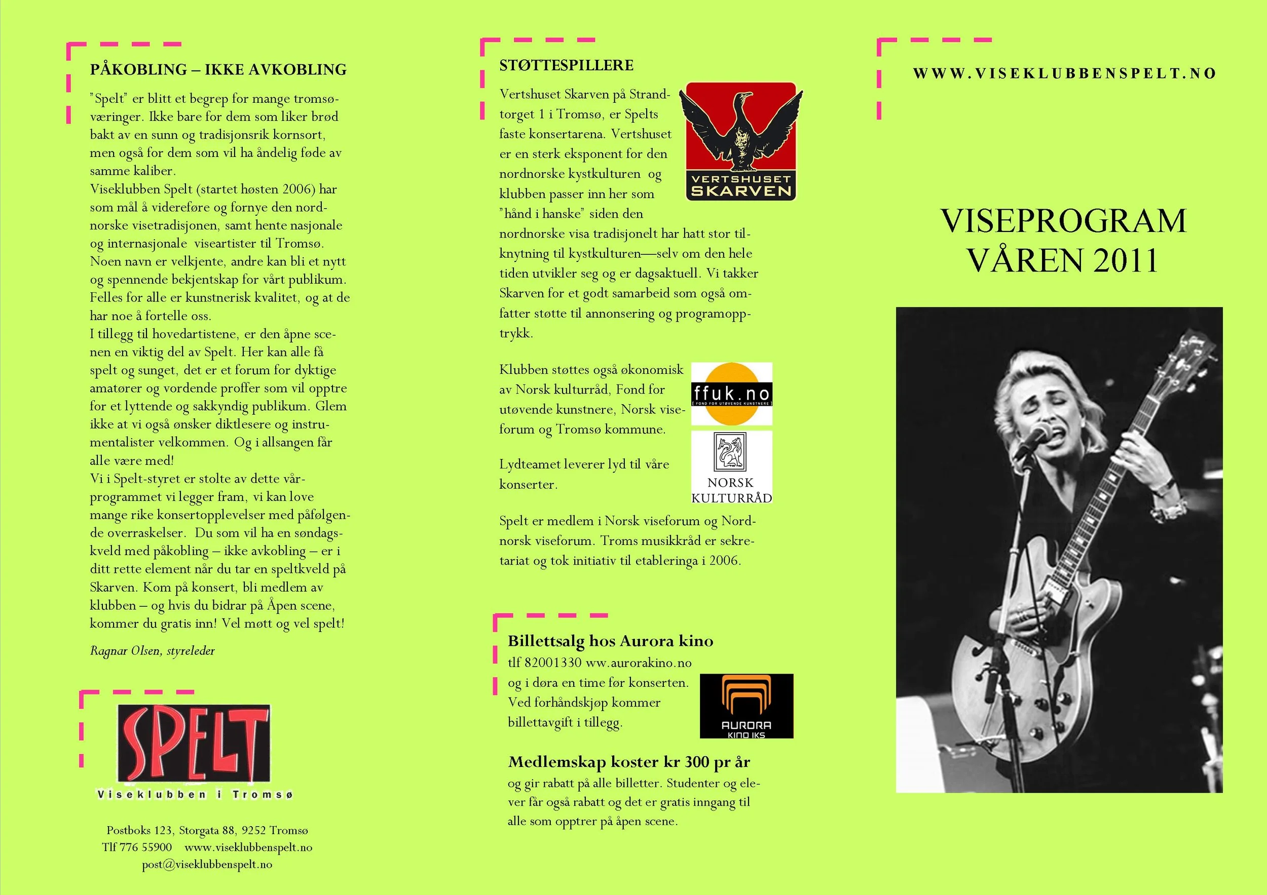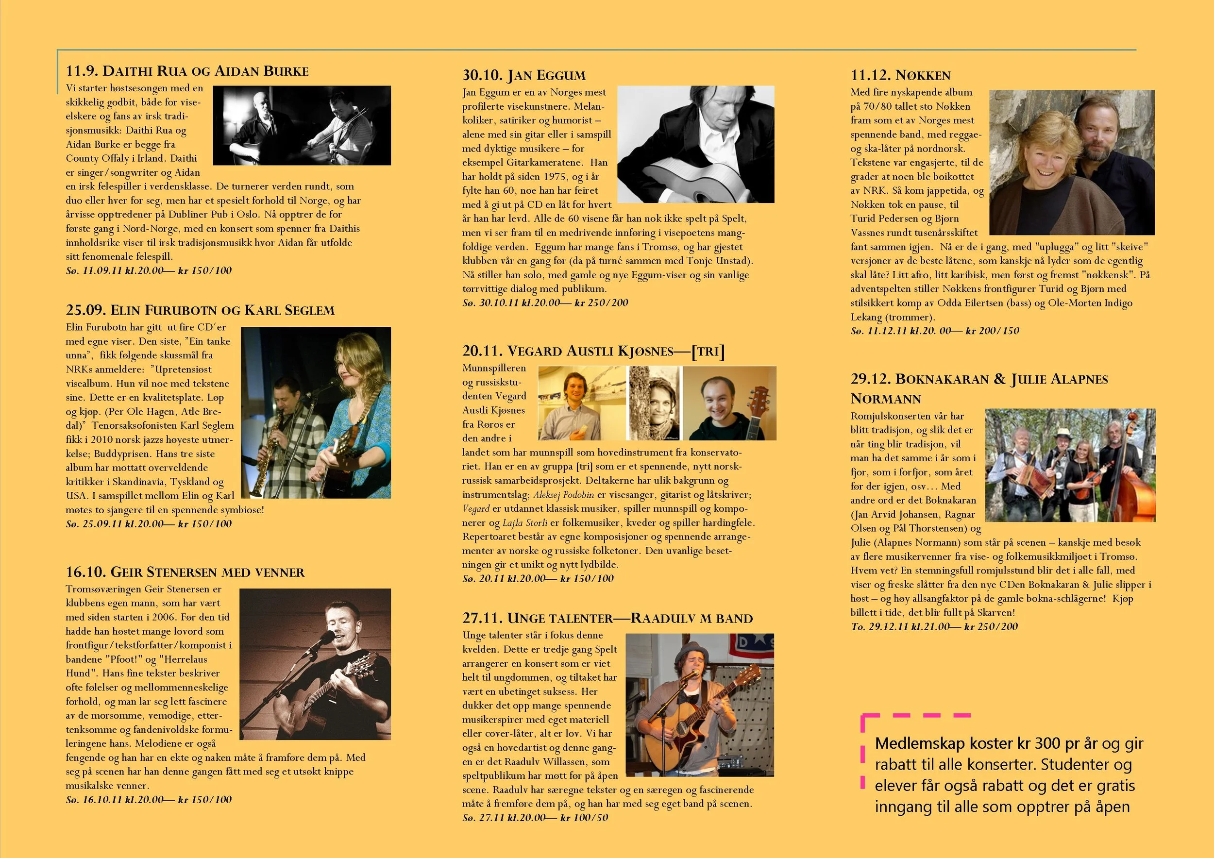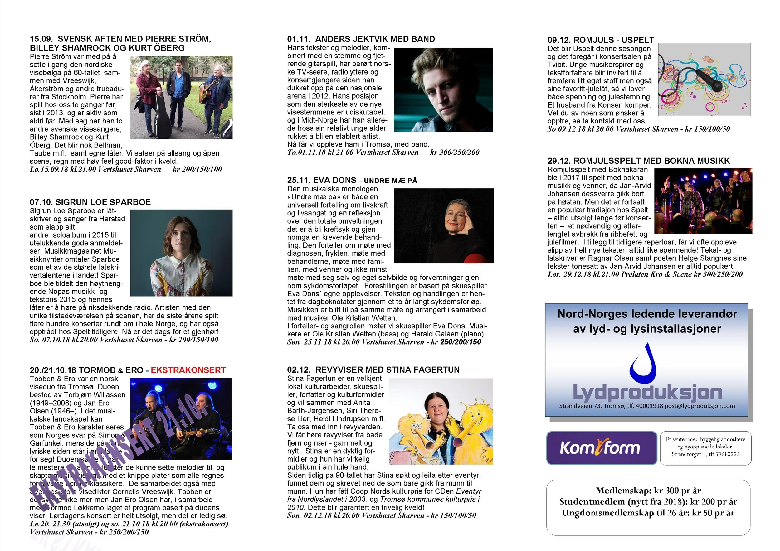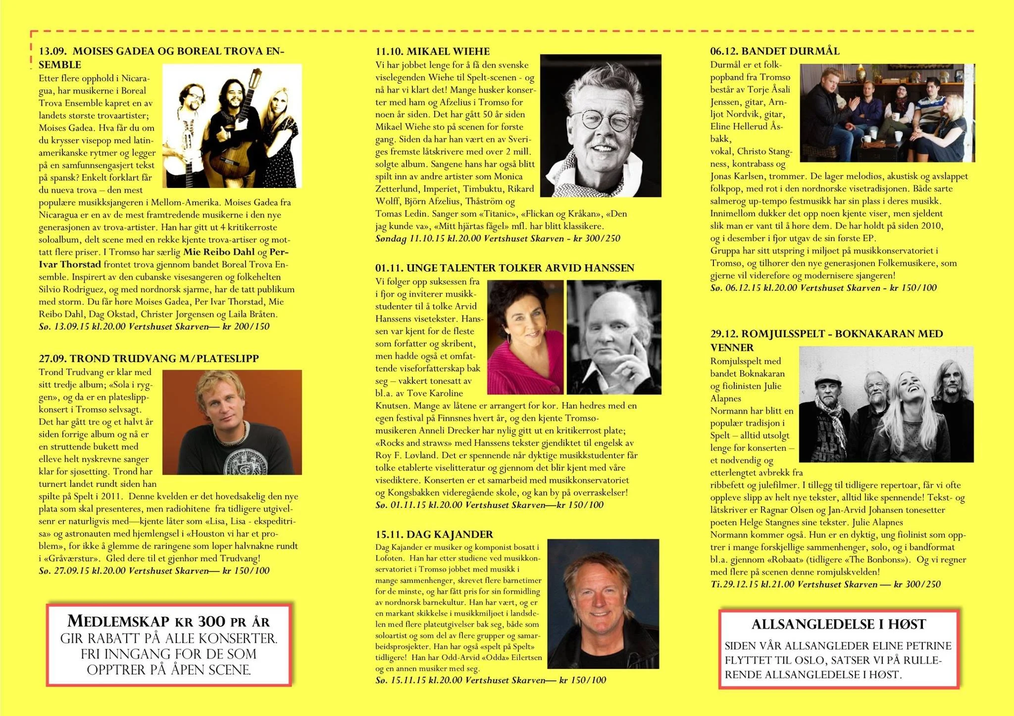 Viseklubben ble etablert i 2006 og begynte å trykke program fra 2009. Vi arrangerer fra 15–20 konserter årlig unntatt juli og august. Programmet vedtas av styret. Har du noen forslag, så kan du sende dem til oss.