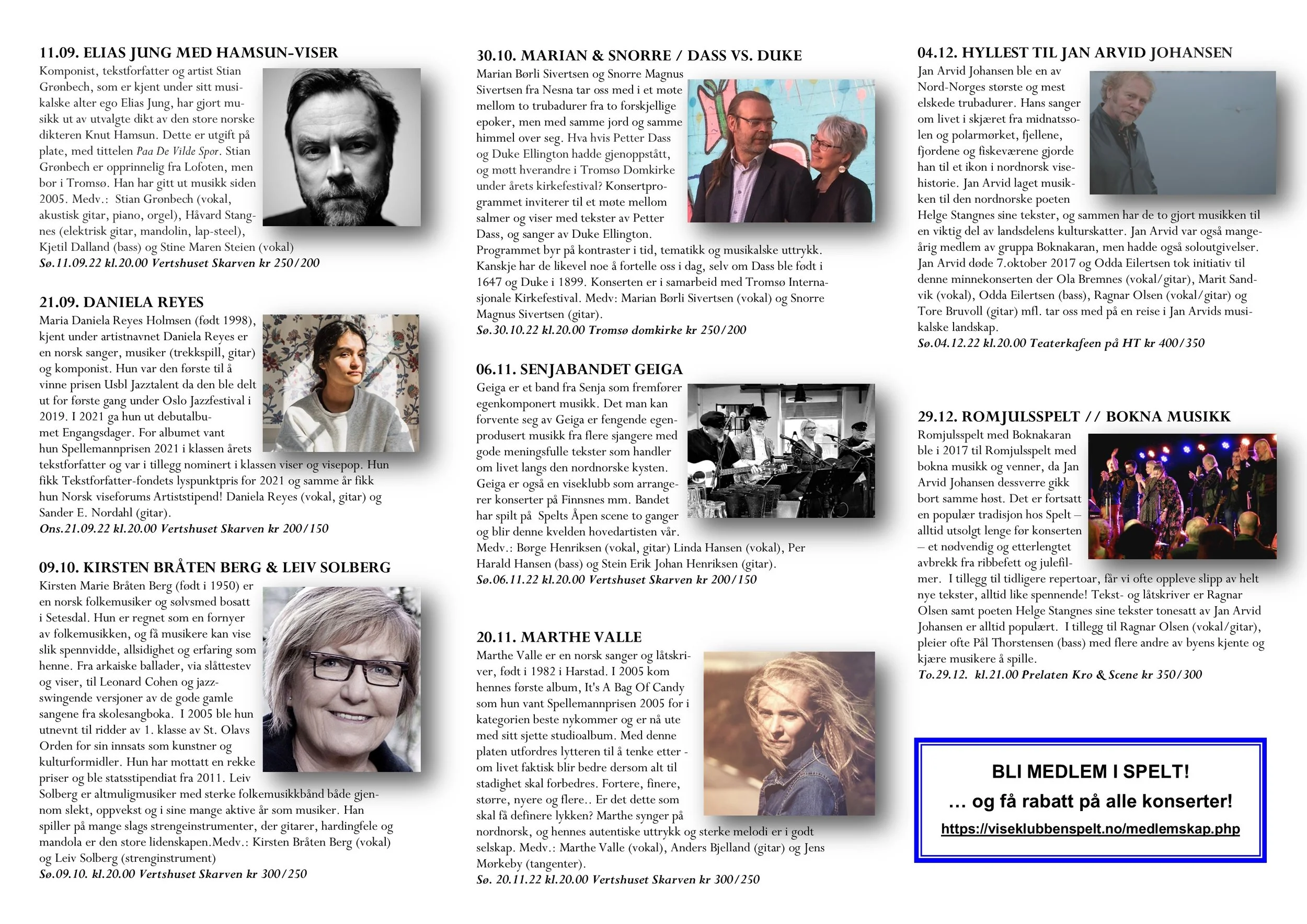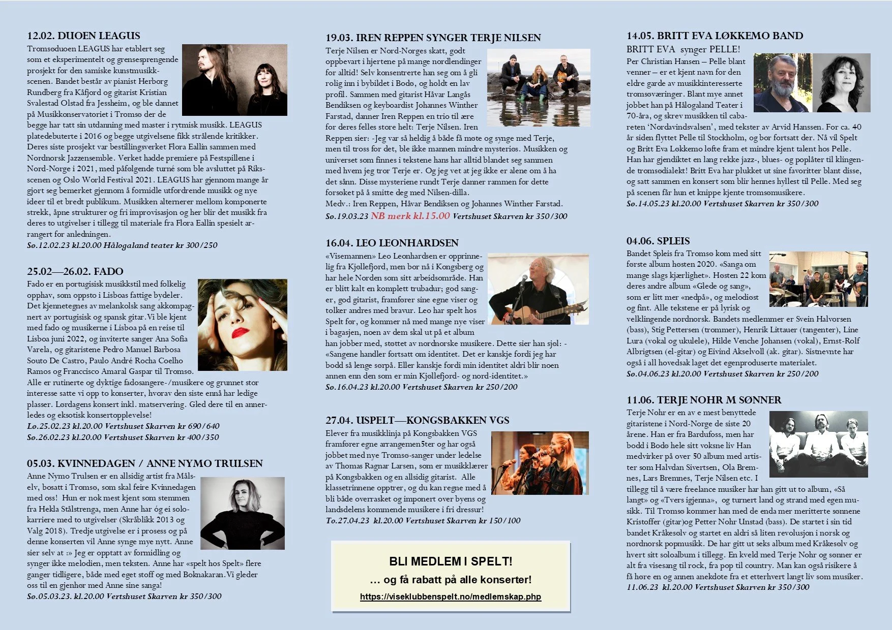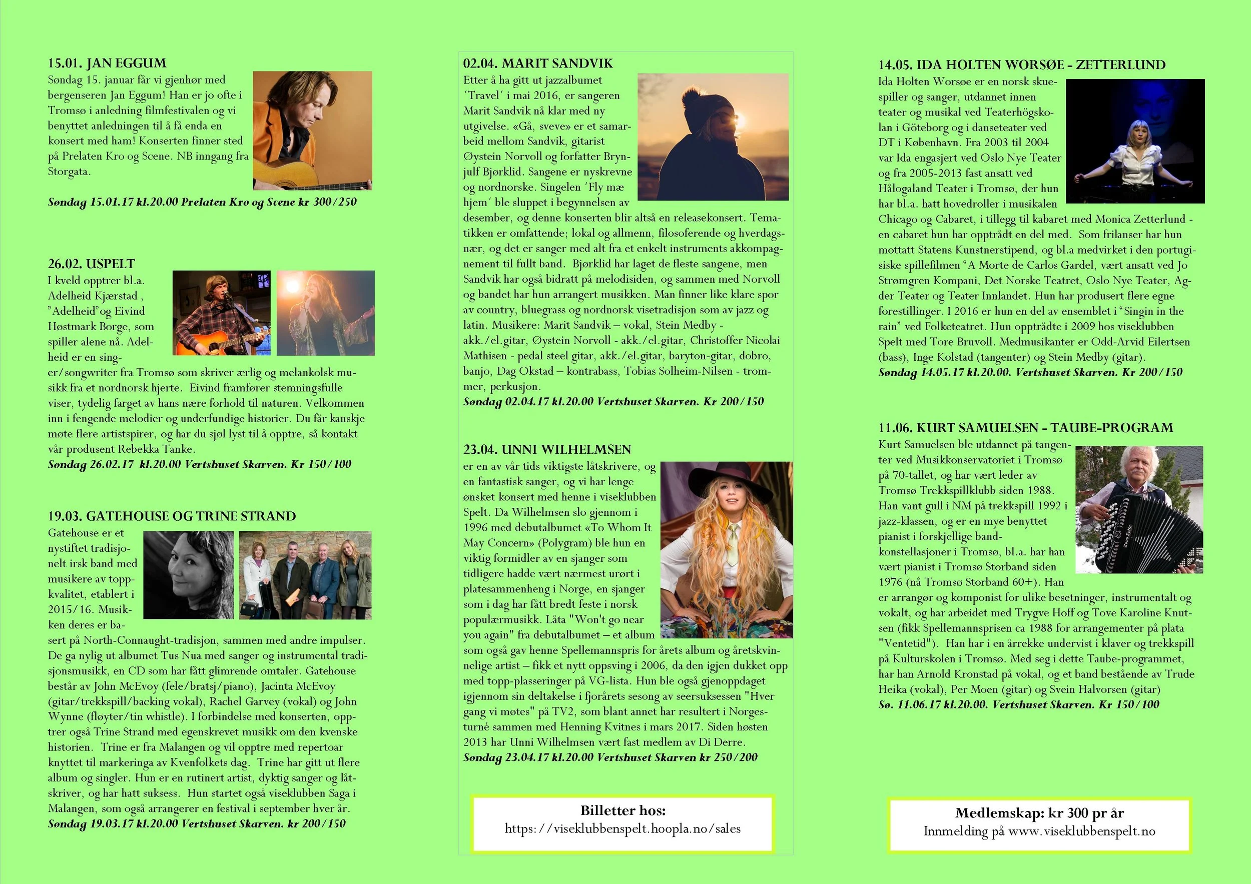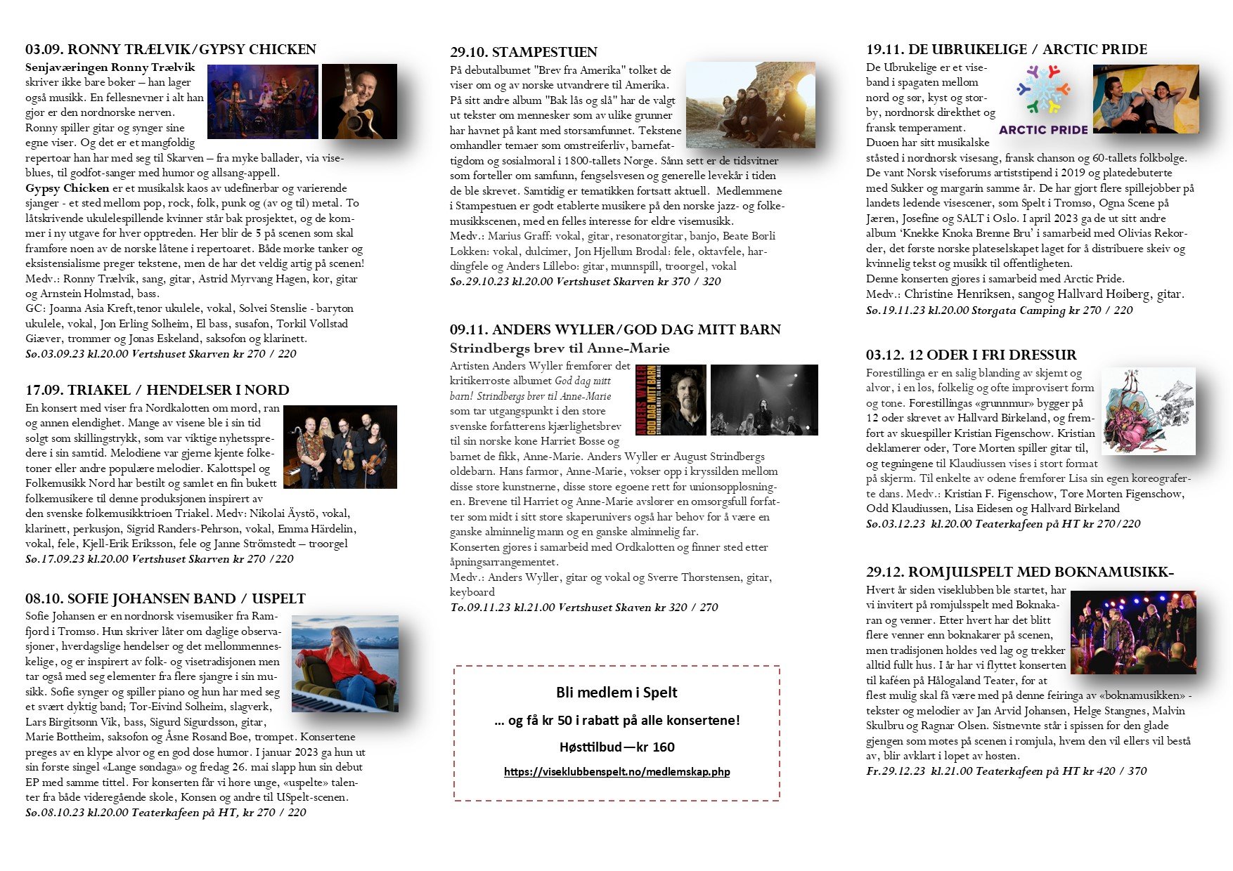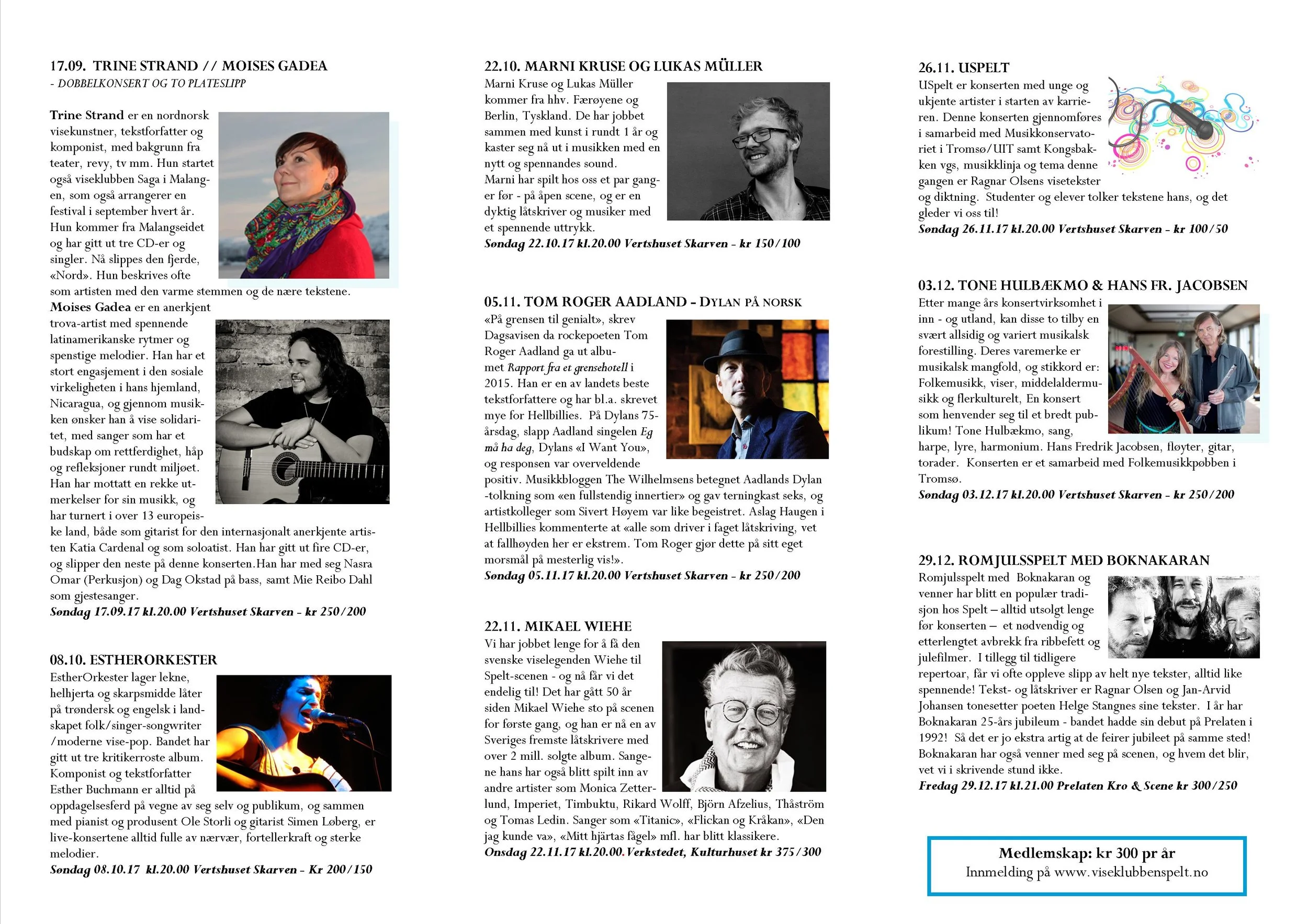 Viseklubben ble etablert i 2006 og begynte å trykke program fra 2009. Vi arrangerer fra 15–20 konserter årlig unntatt juli og august. Programmet vedtas av styret. Har du noen forslag, så kan du sende dem til oss.