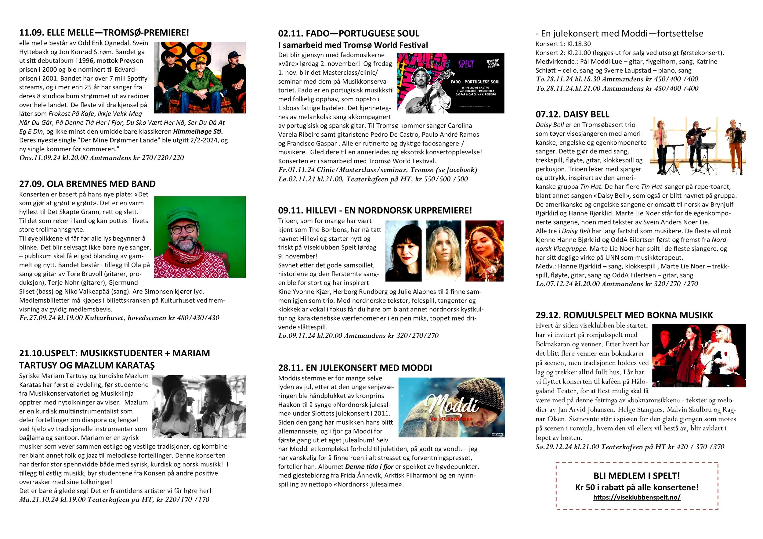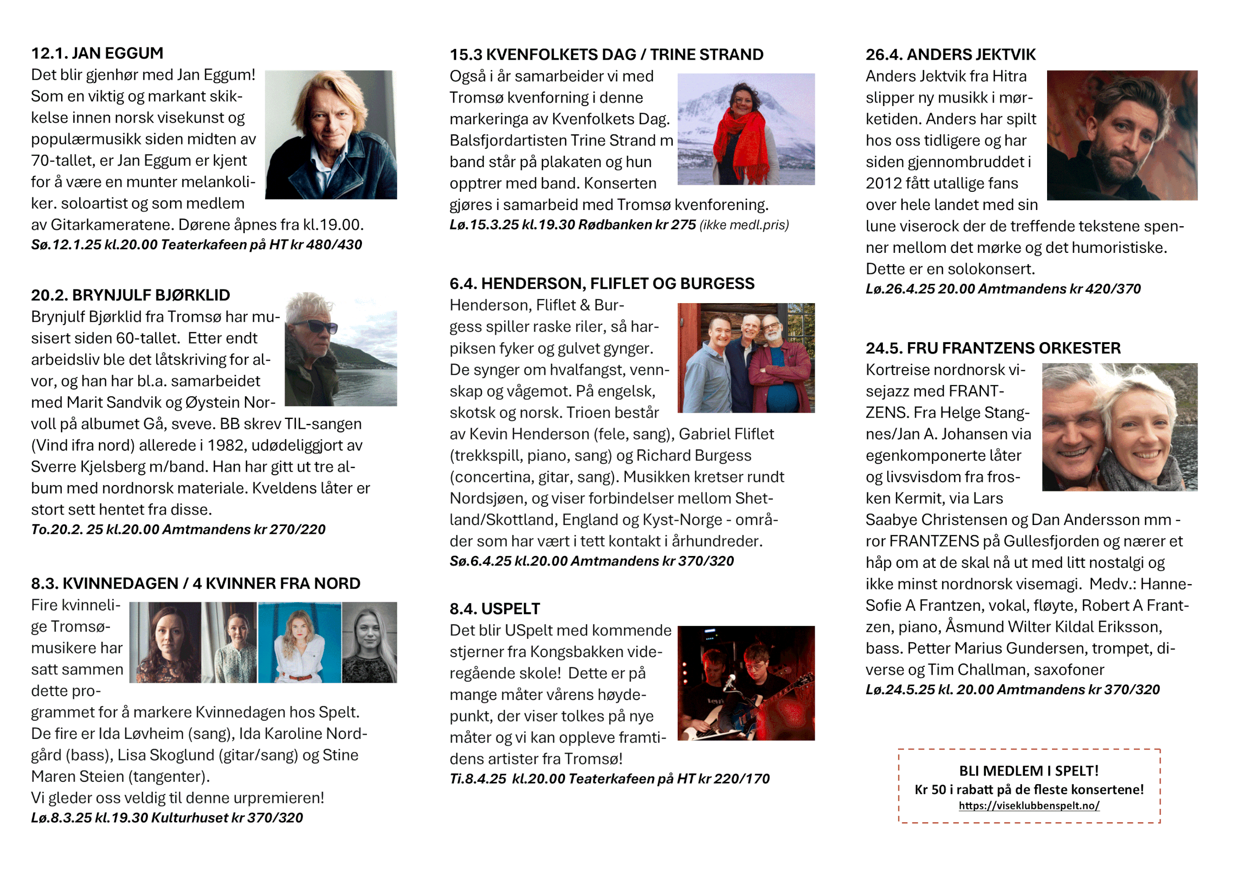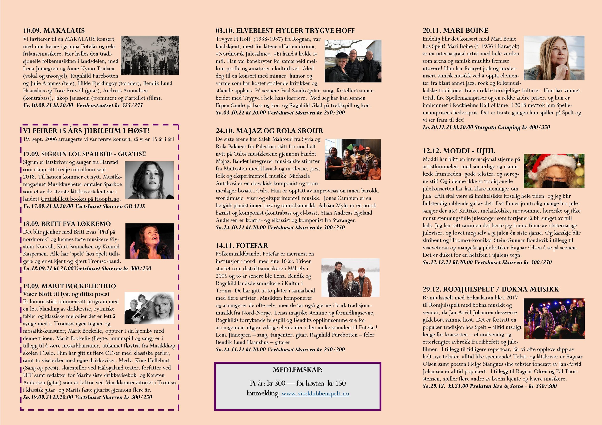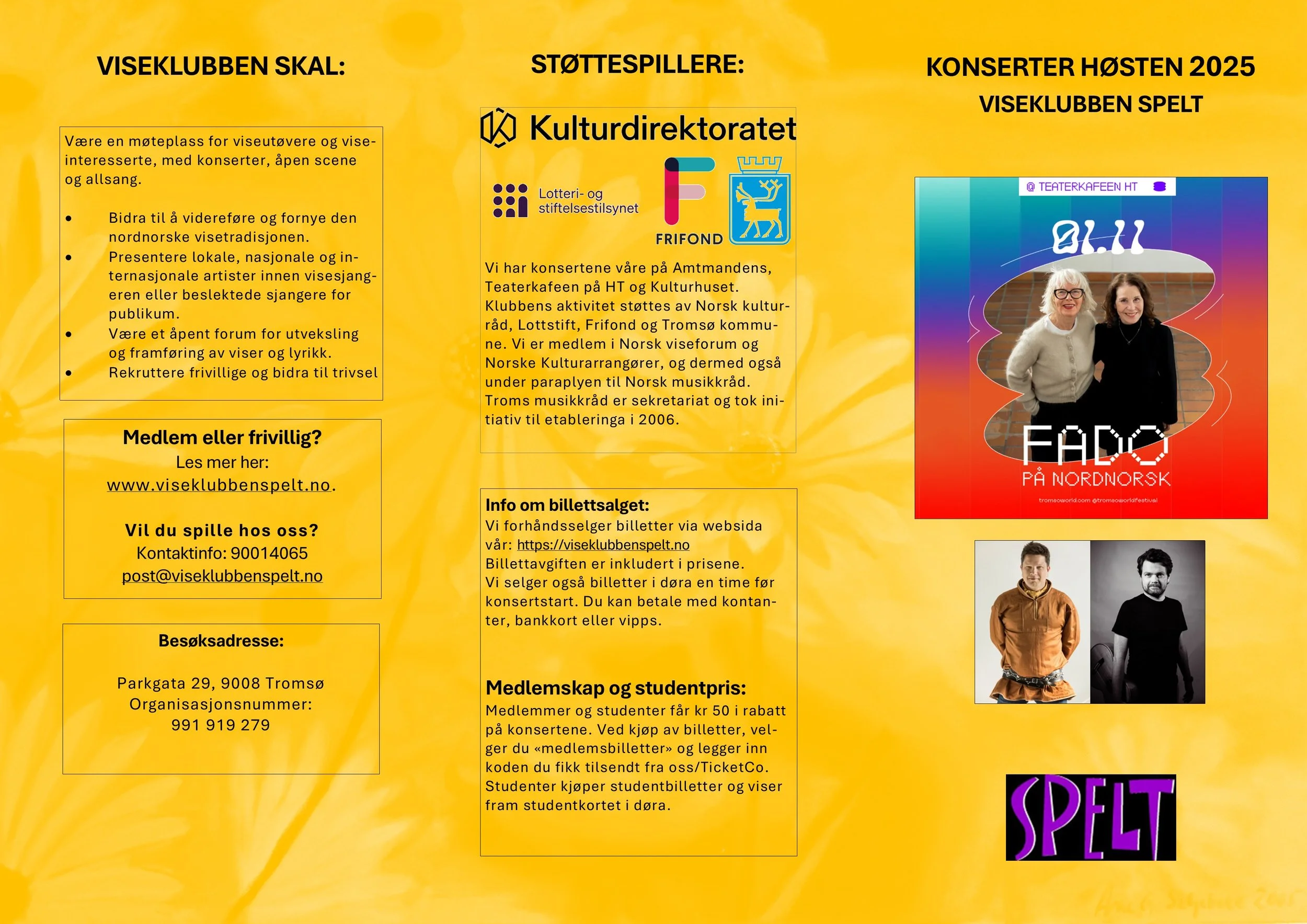 Viseklubben ble etablert i 2006 og begynte å trykke program fra 2009. Vi arrangerer fra 15–20 konserter årlig unntatt juli og august. Programmet vedtas av styret. Har du noen forslag, så kan du sende dem til oss.